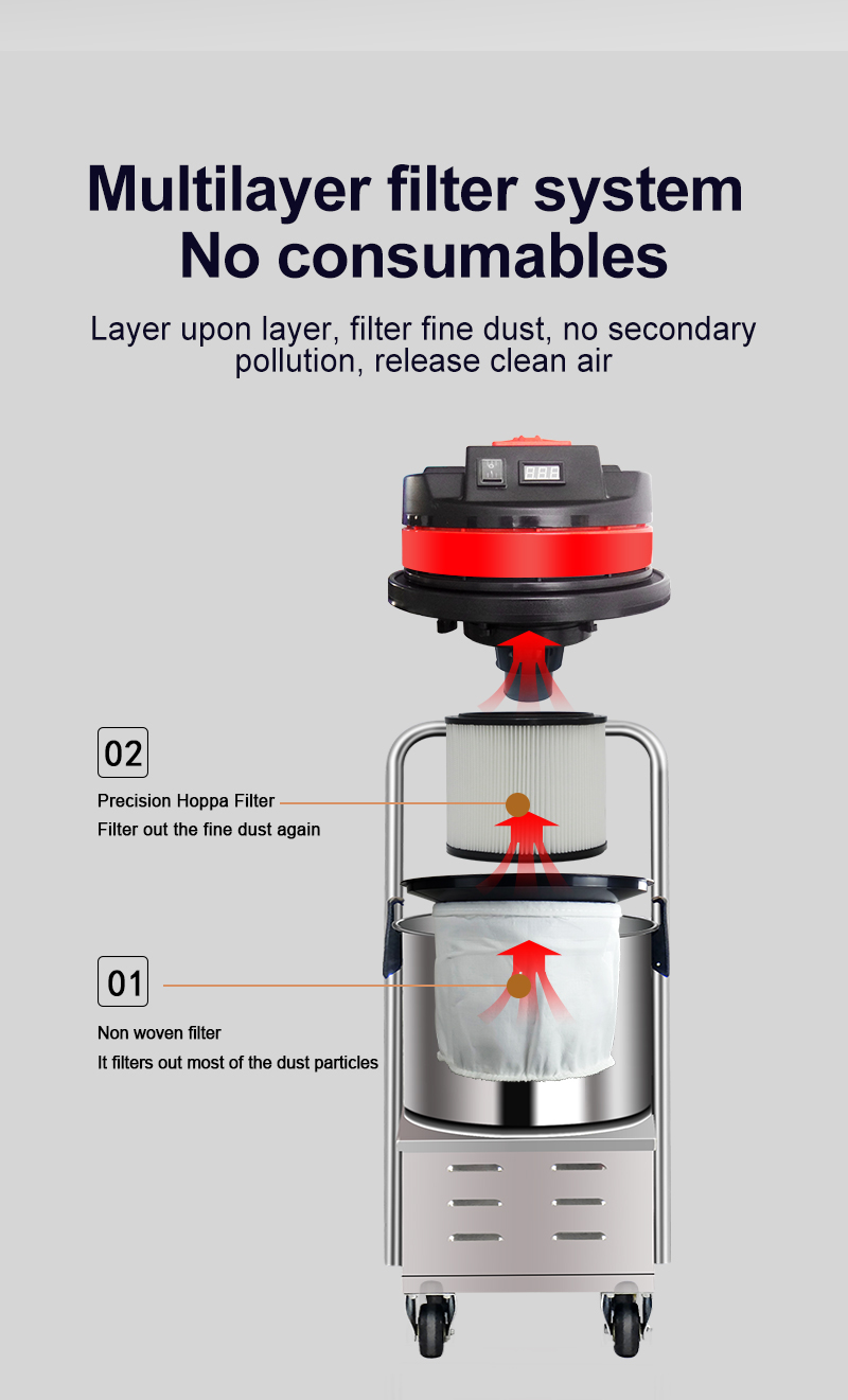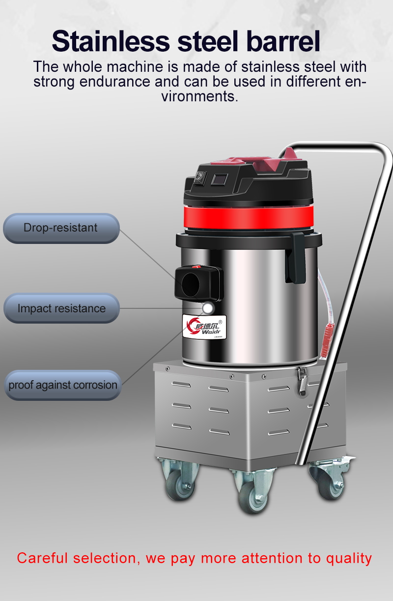Small battery powered cordless industrial vacuum cleaner, suction dust particles water stains with battery type vacuum cleaner