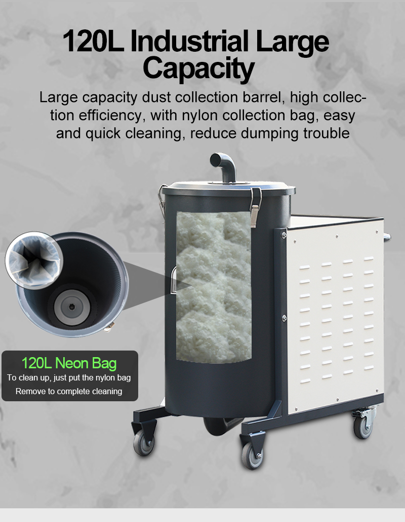 Industrial mobile textile factory vacuum cleaner, workshop production line suction cloth strip with 120L industrial vacuum cleaner