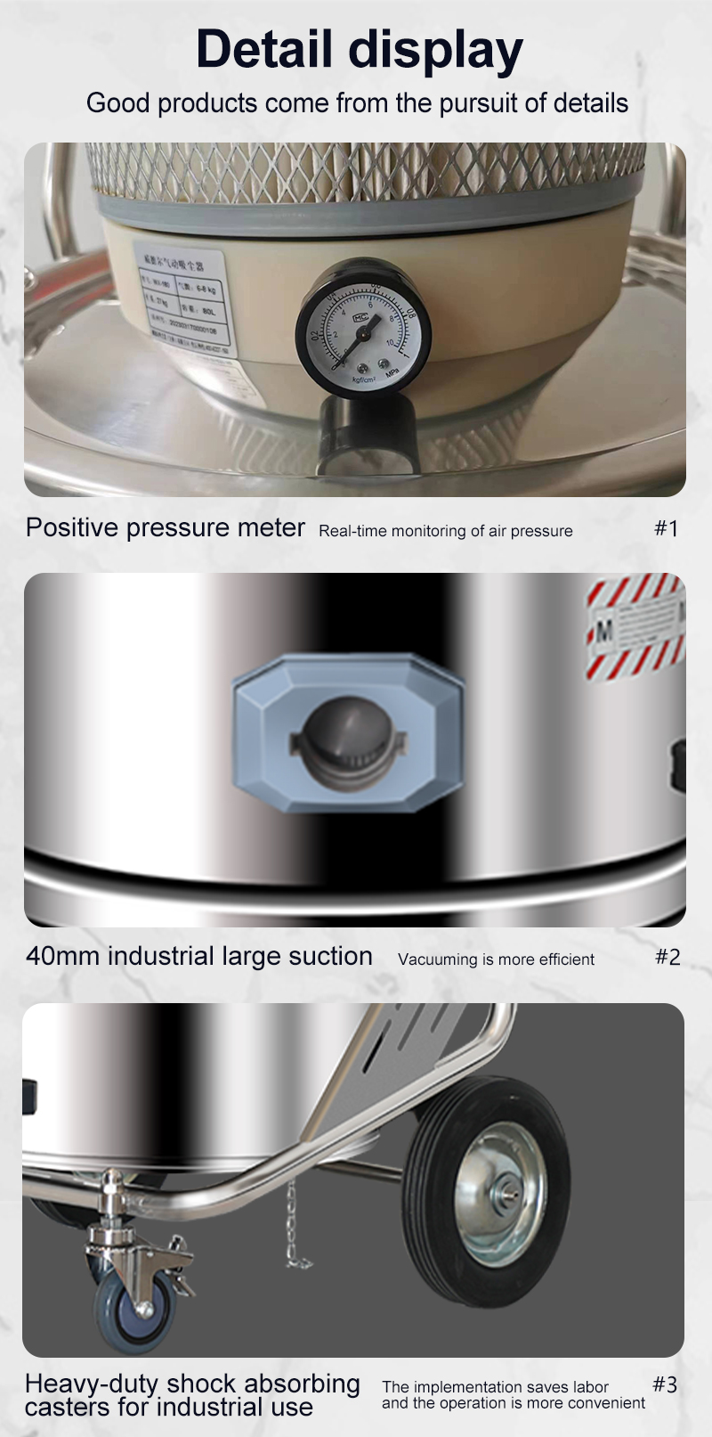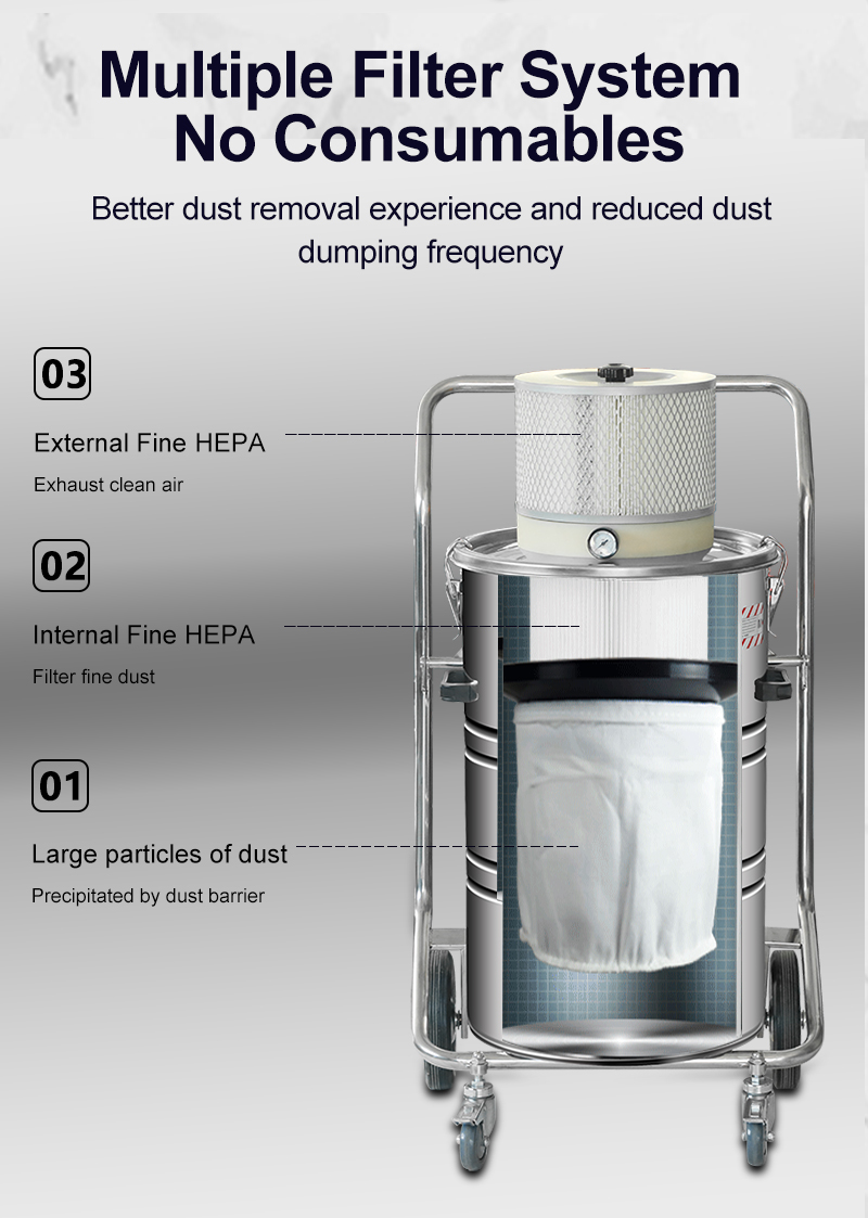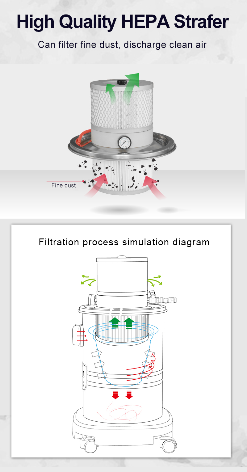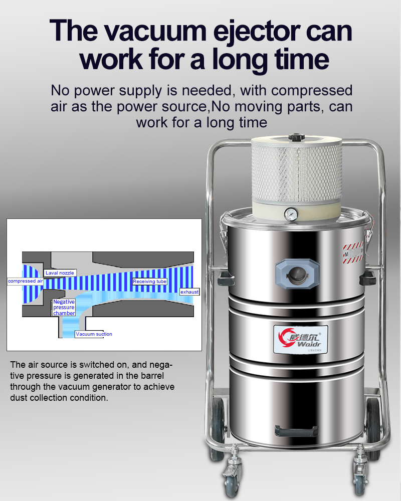 Pneumatic Industrial vacuum cleaner for processing workshop, compact structure